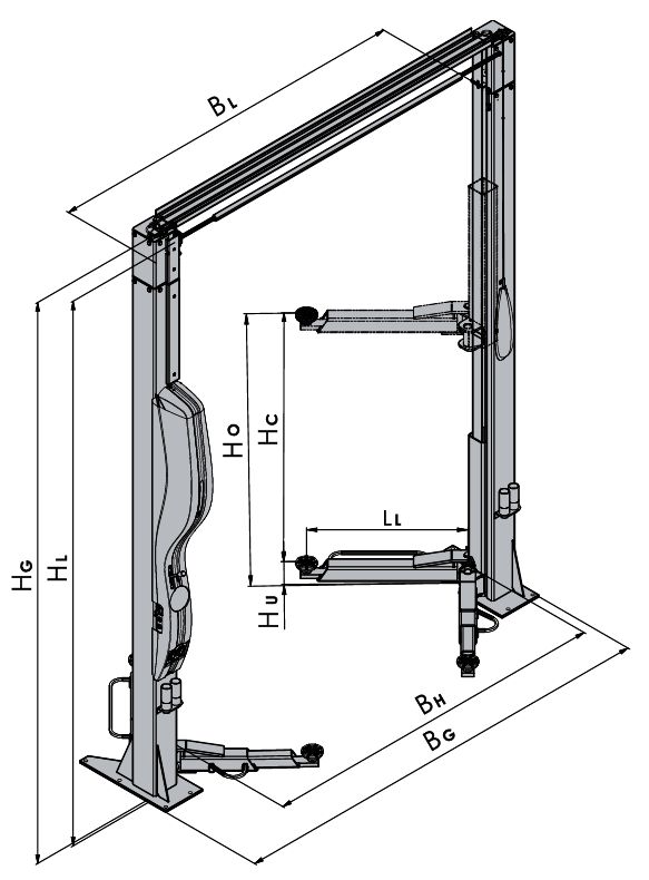 - Pomiędzy kolumnami podnośnika nie występują żadne wzmocnienia ani ramy, ułatwiając tym samym przemieszczanie pojazdu w obszarze dźwignika.