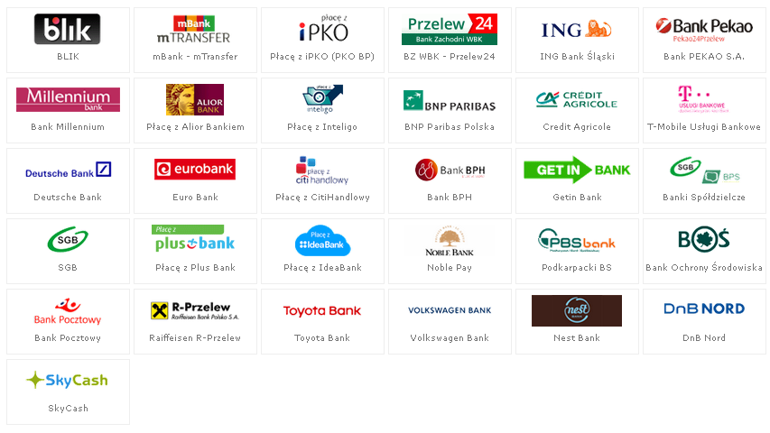 Forma płatności elektronicznej obsługiwana przez: . Rozliczenia płatności online przeprowadzane są przez PayPro S.A. (przelewy24.pl).