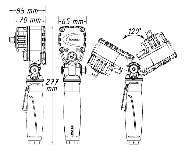 Gwint przyłącza sprężonego powietrza: (wewnętrzny) 12,91 mm (1/4″)