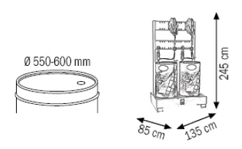- 1x 023-1930-000 - podstawa płaska na 2 beczki 180-220 L ze stelażem umożliwiającym zamocowanie pompy, zwijadła i innego osprzętu, wymiary: 1350x850x2450(H) mm, waga: 112,70 kg