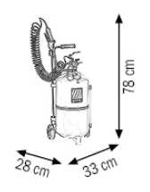 Mobilny pneumatyczny rozpylacz ze zbiornikiem o pojemności 24 L przeznaczony do rozpylania płynów myjących (detergentów), płynów dezynfekujących, olejów o niskiej gęstości, mycia pojazdów i maszyn, grafitowania i smarowania.
