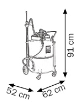 Pneumatyczna wysysarka do przepracowanego oleju ze zbiornikiem 120 L na kółkach, wyposażonym we wskaźnik poziomu napełnienia zbiornika.