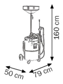 Pneumatyczna wysysarko-ściekarka do przepracowanego oleju na zbiorniku 65 L na kółkach.