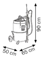 Pneumatyczna wysysarka do przepracowanego oleju ze zbiornikiem 65L na kółkach, wyposażonym we wskaźnik poziomu napełnienia zbiornika.
