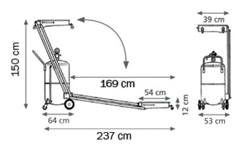 MECLUBE - Pneumatyczna wysysarko-ściekarka oleju ze zbiornikiem 90 L i wanną ściekową pantografem