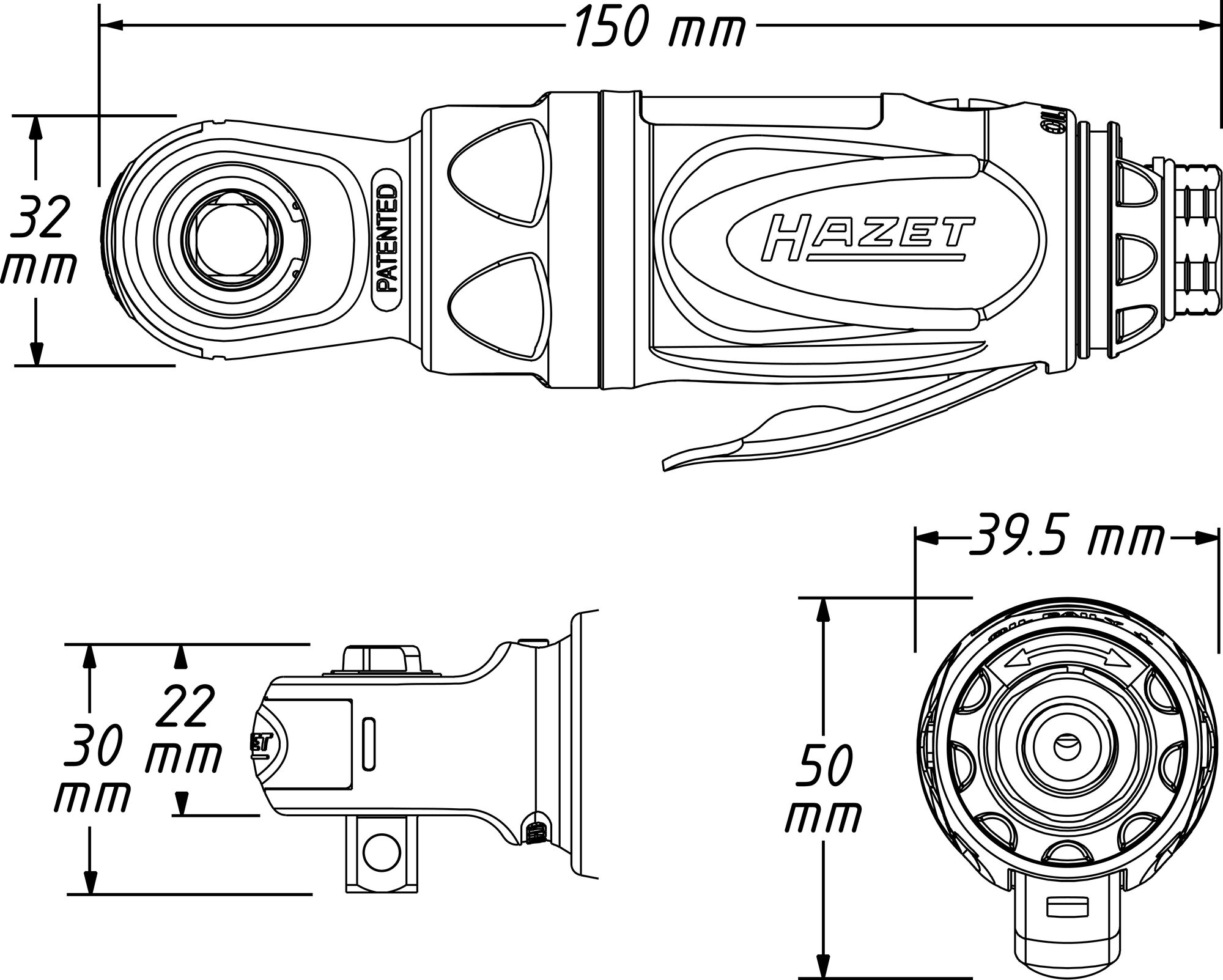 Klucz zapadkowy 3/8" HAZET - 9021 P-2 (54 Nm)
