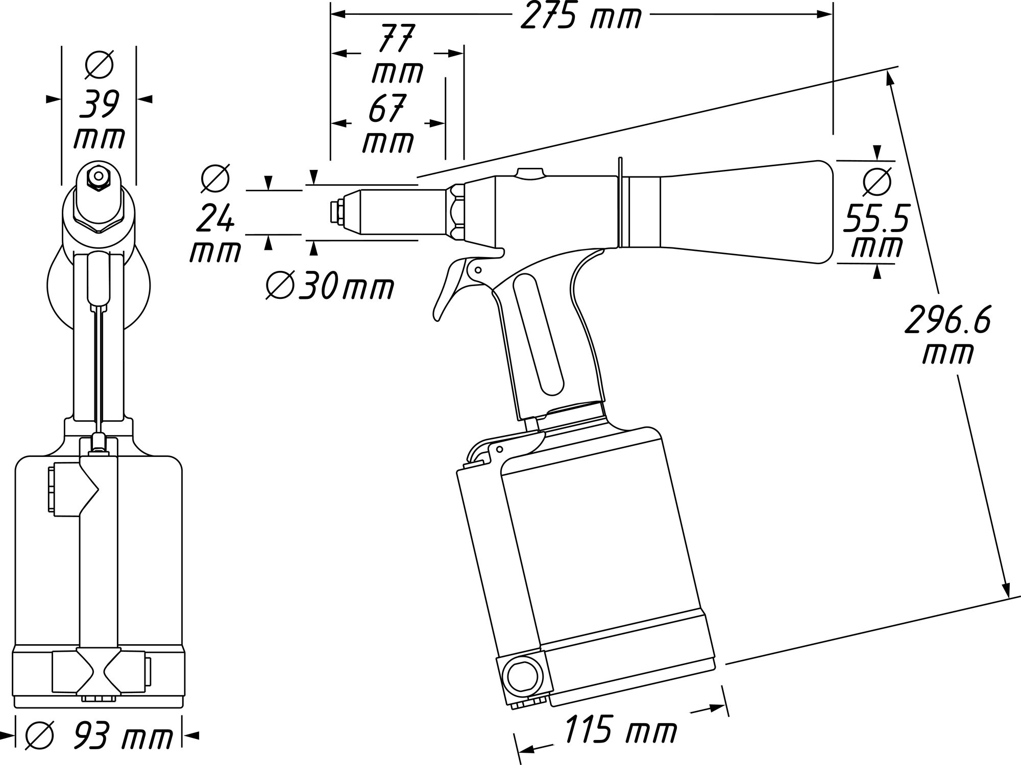 Nitownica pistoletowa do nitów zrywalnych.