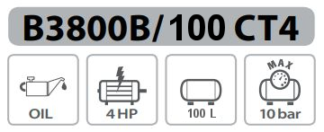 Kompresor tłokowy NUAIR B3800B/100 CT4 - Linia STANDARD (3,0 kW; 100L)