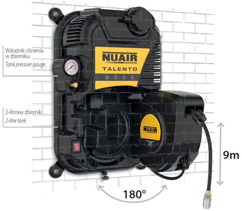 Kompresor tłokowy bezolejowy 2L NUAIR TALENTO (ścienny)