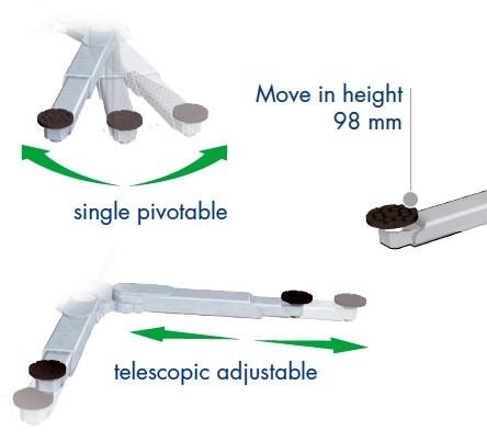 • Rury prowadzące przykręcone do cynkowanych trawersów zapewniają synchronizację ruchów podnośnika i zabezpieczają przed obracaniem się najazdów.