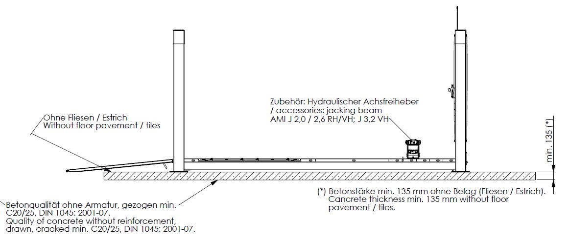 - Min. wytrzymałość podłogi betonowej 135 mm