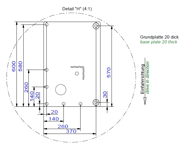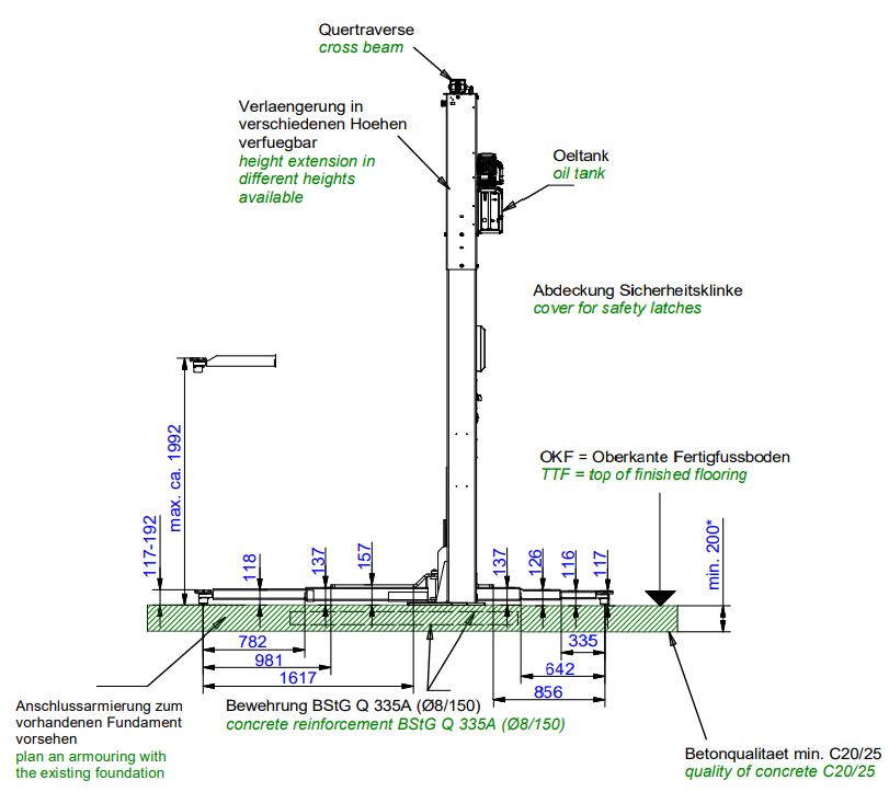 Pod podnośnik wymagany jest jednolity fundament o min. grubości 200 mm wykonany w klasie C20/25.