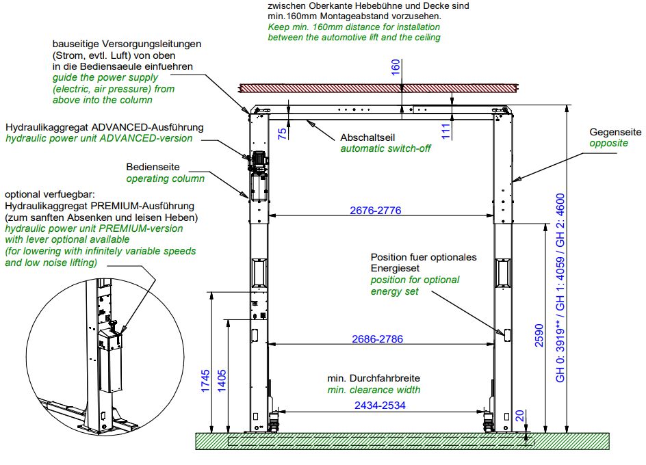 Podnośnik Nussbaum Power Lift SLH 2.46 UNI występuje w wersjach: