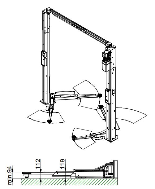 • Pod podnośnik wymagany jest jednolity fundament  o min. grubości 200 mm wykonany w klasie  C20/25 (B 25).