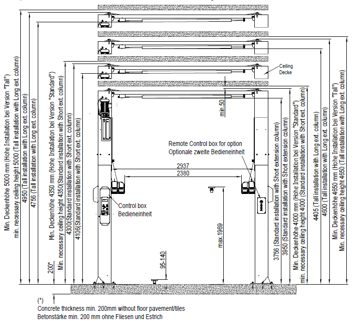 - Minimalna wysokość sufitu: STD = 4000 mm / TALL = 4650 mm