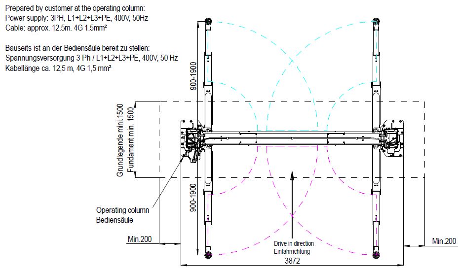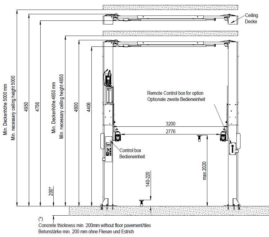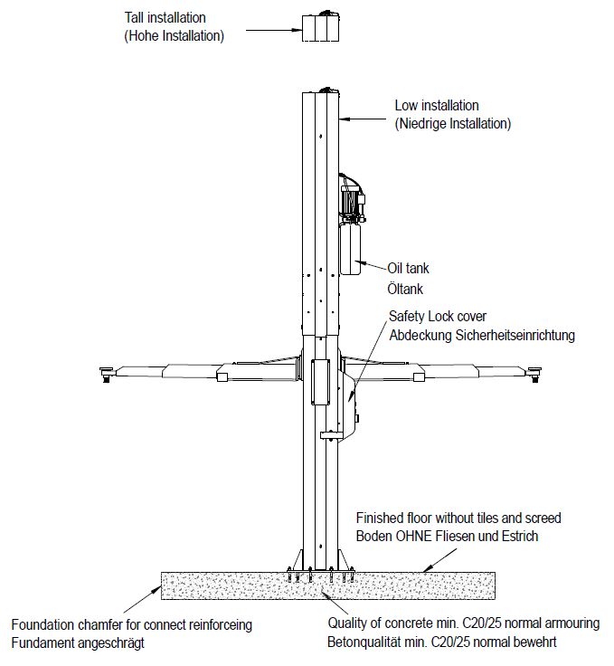 Pod podnośnik wymagany jest jednolity fundament  o min. grubości 200 mm wykonany w klasie  C 20/25.