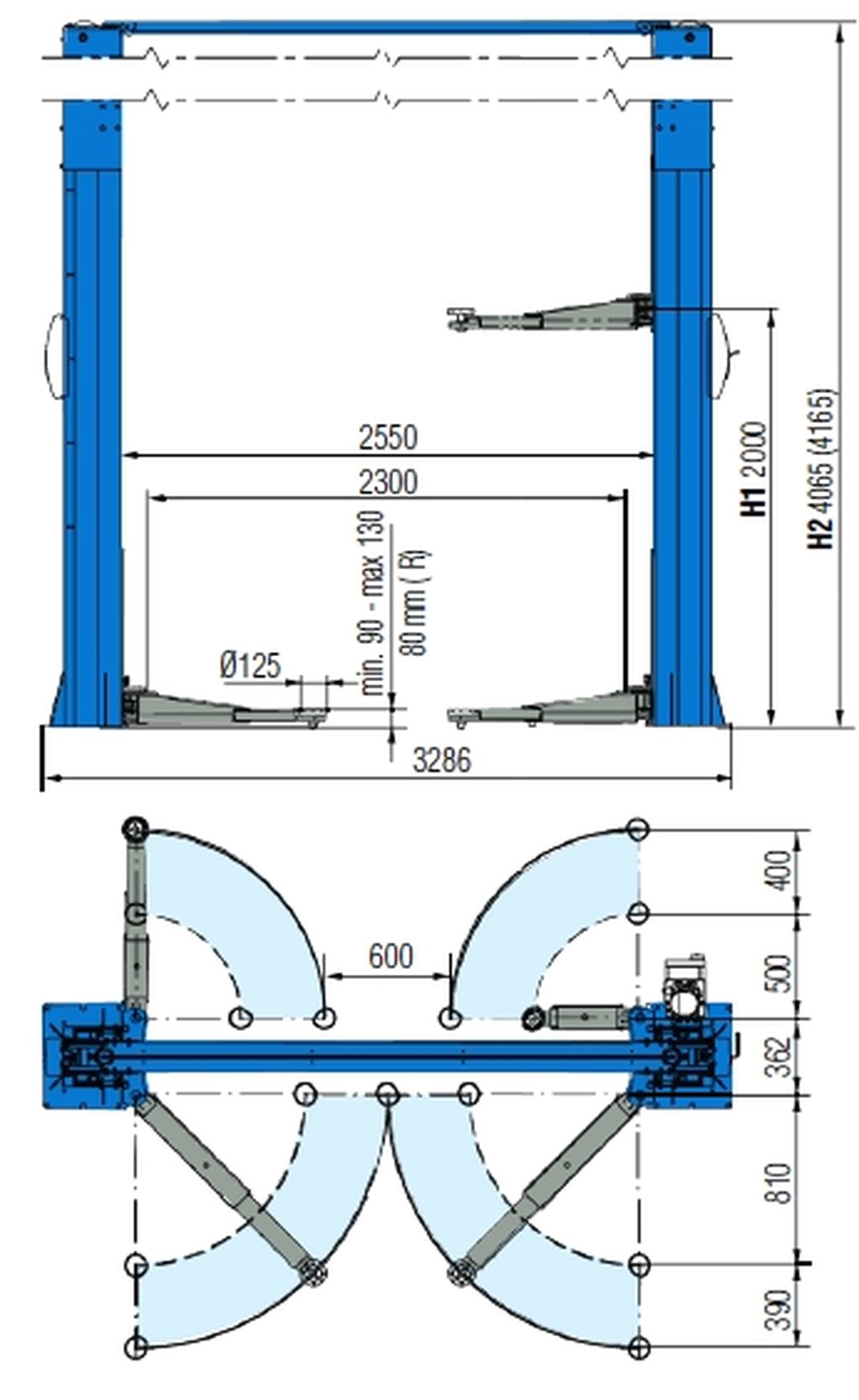 KPH 370.32 R (obniżone ramiona - dwustopniowe) - udźwig do 3200 kg, idealny do samochodów z obniżonym zawieszeniem. Wysokość podejmowania pojazdów = 80 mm
