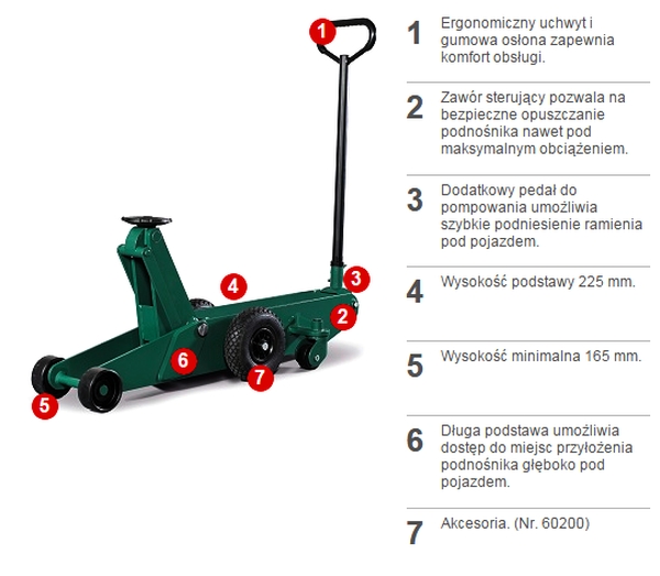 - Dodatkowe pompowane gumowe koła montowane w punkcie równowagi, zwiększające zwrotność podnośnika (nr. 60200)