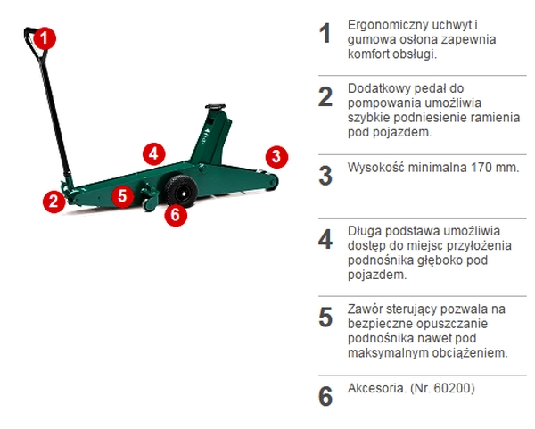 1. Dodatkowe pompowane gumowe koła montowane w punkcie równowagi, zwiększające zwrotność podnośnika (nr. 60200)