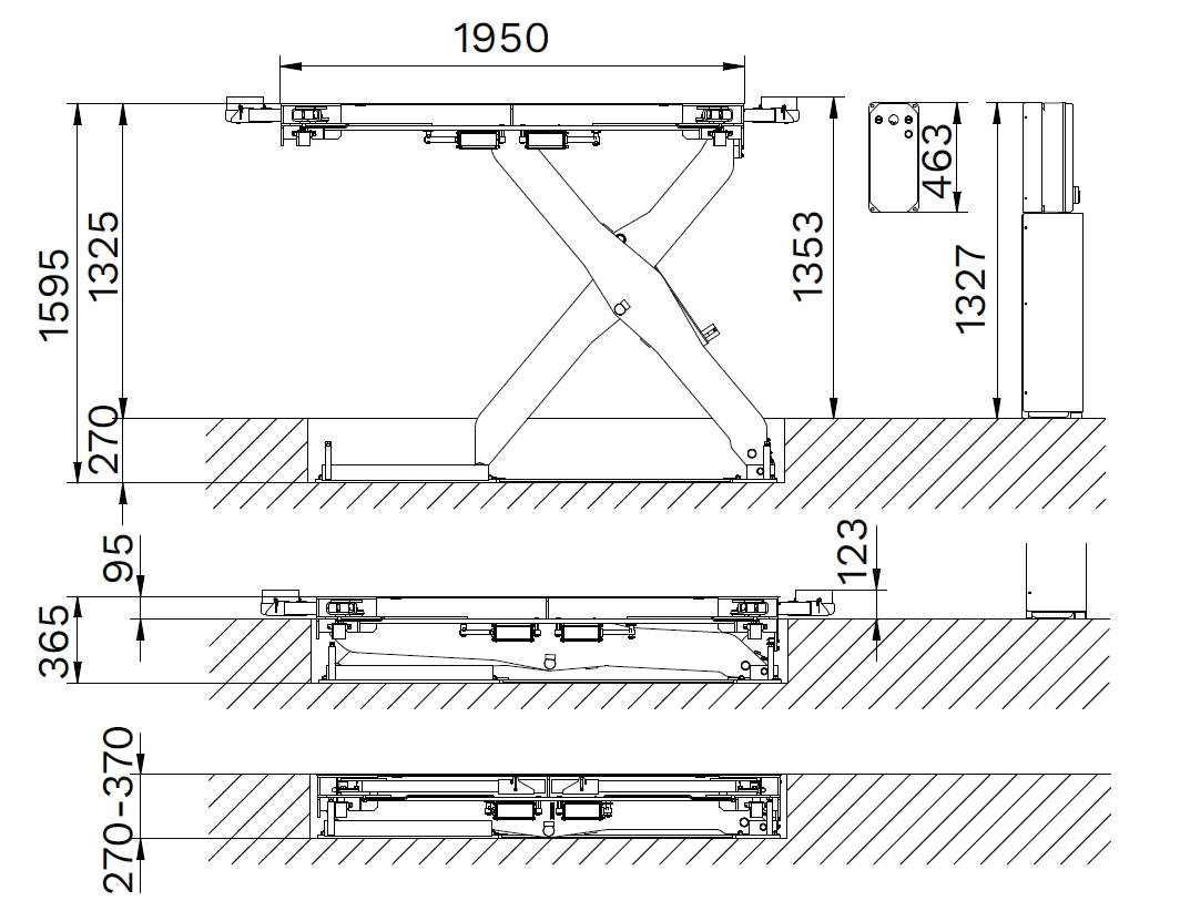 Podnośnik nożycowy o udźwigu 3 ton, który idealnie nadaje się do montażu w kabinach lakierniczych i przygotowalniach, a także do montażu w tradycyjnych podłogach.
