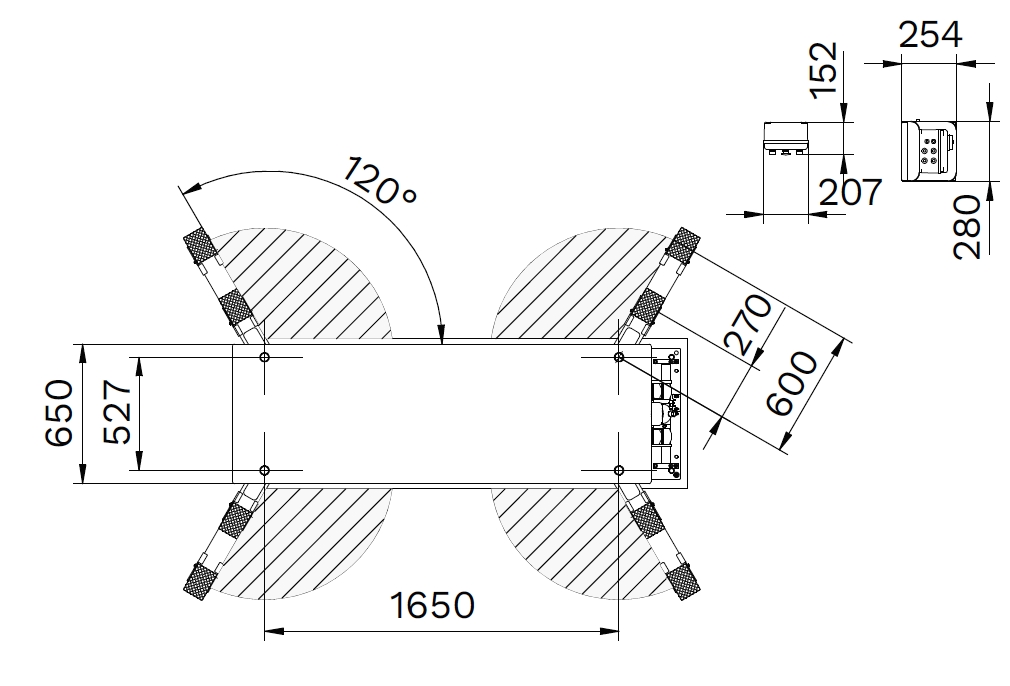 Ramiona mają wbudowaną gumową płytkę nośną, dzięki czemu zawsze pozostają na podnośniku, nawet w pozycji spoczynkowej. Podnośnik jest gotowy do użytku bez konieczności wykonywania przez operatora jakichkolwiek innych prac.