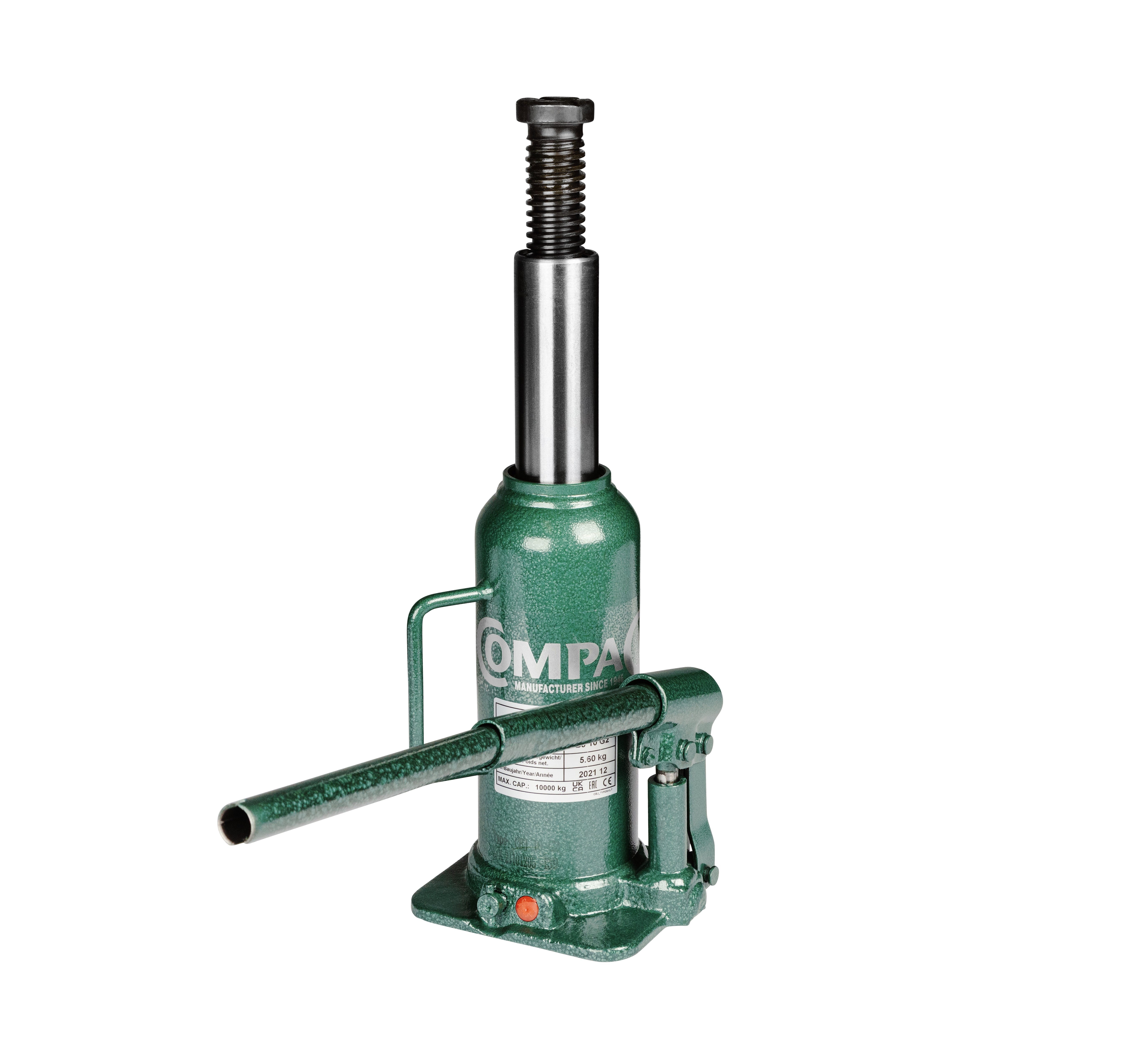 Ręczny podnośnik warsztatowy - butelkowy COMPAC CBJ, punktowy, niskiego podnoszenia o udźwigu w zależności od wersji od 3000 kg do 50 000 kg.