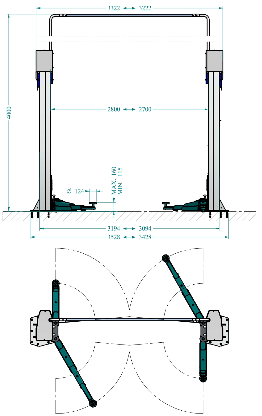 • Podnośnik posiada elektroniczną synchronizację ramion.