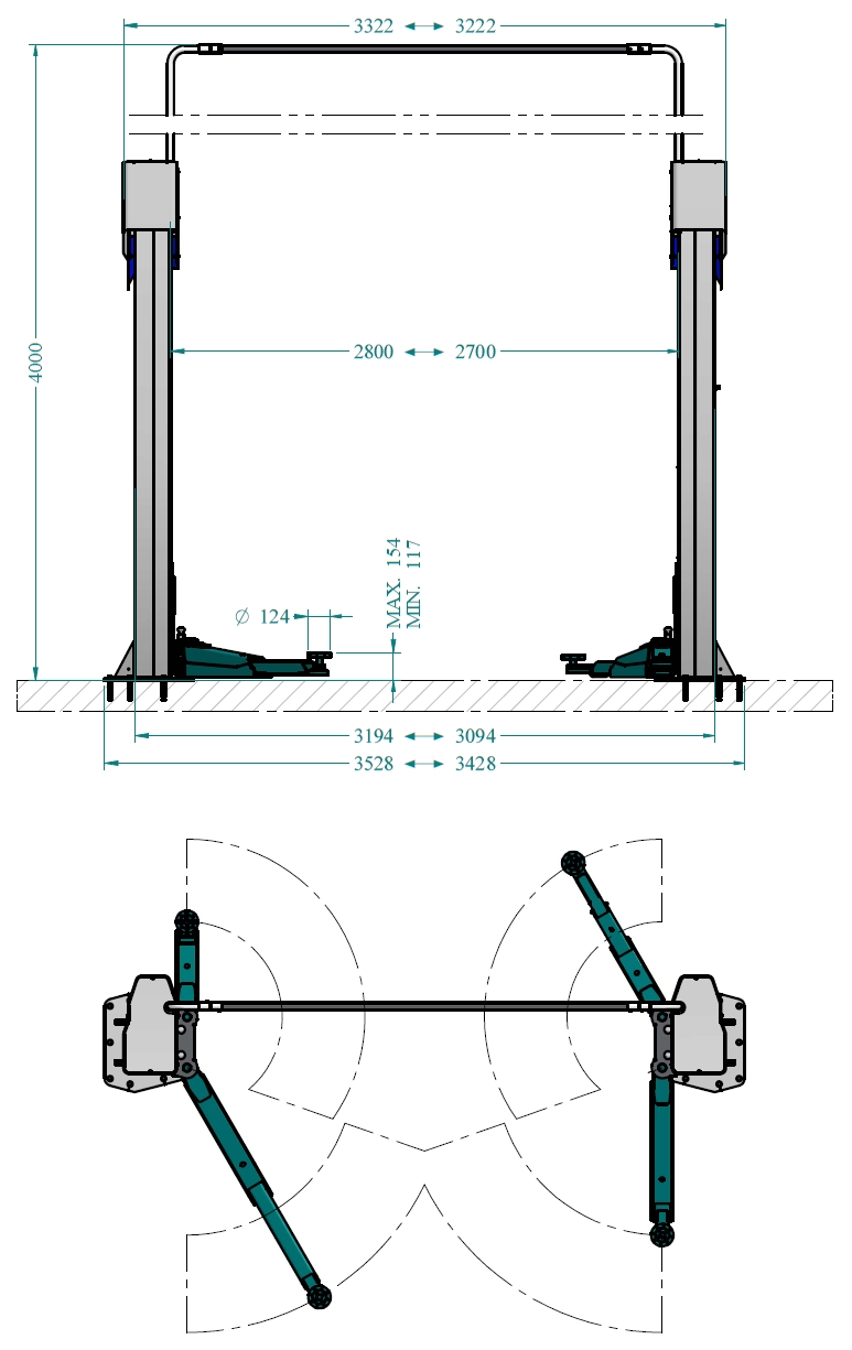 • Podnośnik posiada elektroniczną synchronizację ramion.