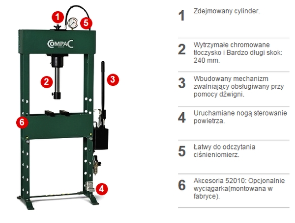 Prasa pneumatyczno-hydrauliczna - COMPAC HP25 o nacisku max. do 25 ton i ręcznym sterowaniu.