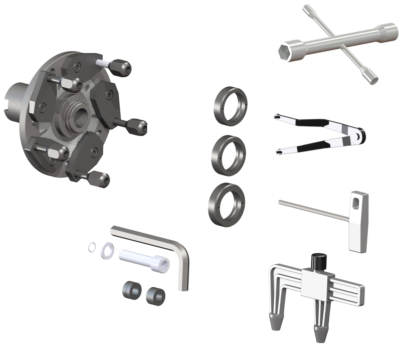 - 3 x pierścienie centrujące o średnicy 58, 60, 65 mm (405e009 001 / 002 / 004)