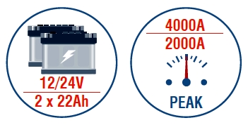 • Nowa bateria szczytowa 2x 12V 22Ah / 4000A peak 12V / 2000A peak 24V