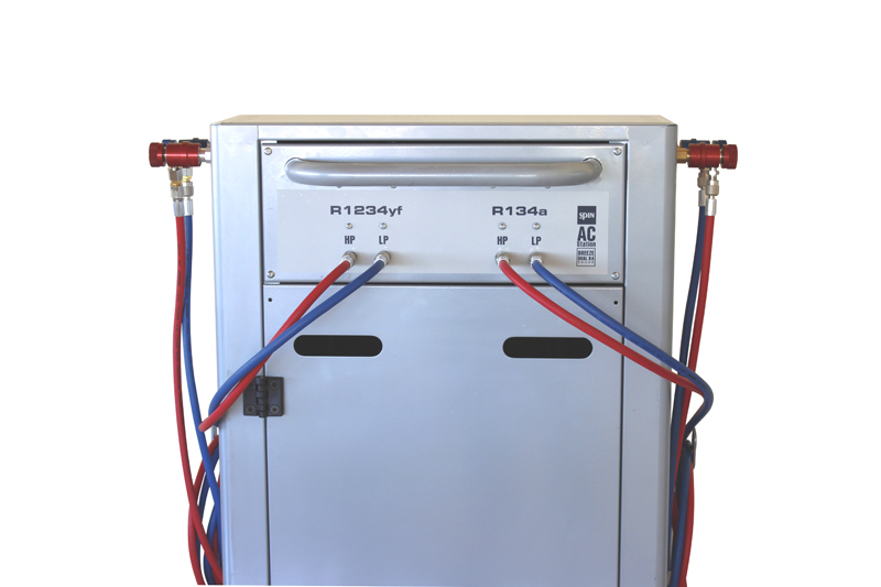 G - Tylny widok urządzenia z 2 butlami na czynnik R134a i na HFO1234yf
