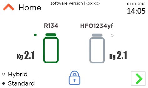 Wyświetlacz graficzny z ikonami = TAK Wielojęzyczne oprogramowanie = TAK Pojemność zbiornika = 2 x 10,5 kg Pompa próżniowa = 100 L/min Ogrzewanie automatyczne = TAK Wydajność sprężarki = 2 x 400 g/min Automatyczne odzyskiwanie = TAK Automatyczne wymiana oleju (ze skalą) = TAK Programowalna próżnia = TAK Programowalny test próżniowy (w mbar) = TAK Standardowy wtrysku oleju / dodatku, ze skalą = TAK Wtrysk oleju / dodatek do pojazdów hybrydowych, ze skalą = TAK Oprogramowanie dla pojazdów hybrydowych = TAK Automatyczna funkcja MULTIPASS = TAK Ręczna kompensacja ciśnienia - funkcja WCS = TAK Oprogramowanie do płukania czyszczącego (z zestawem 01.000.96 na życzenie) = TAK Oprogramowanie do czyszczenia recyklingowego (VW, Audi) (z zestawem 01.000.139 na życzenie) = TAK Regulacja długości węża = TAK Automatyczne czyszczenie wewnętrzne = TAK Wskaźniki HP / LP klasa 1 = TAK (x4) Manometr do butelek = TAK (x2) Oprogramowanie zgodne z Rozporządzeniem Europejskim (EC) nr 842/2006 = TAK Test szczelności z azotem (z zestawem 01.000.218 na życzenie) = TAK Programowalne napełnianie wewnętrznej butelki = TAK Aktualizacja bazy danych i grafiki za pośrednictwem USB = TAK Wbudowana baza danych (samochody, pojazdy przemysłowe, maszyny rolnicze) R134a - R1234yf = TAK Osobista baza danych, 100 pozycji = TAK Przesyłanie danych do komputera = TAK Strona INFO o przeprowadzonych operacjach = TAK 10 wstępnie zdefiniowanych użytkowników = TAK Węże 3/8 SAE L=3000 mm (2x do R134a i 2x do 1234yf) = TAK Wymiary = 620 x 570 x 1132 mm Waga = 125 kg Szczegóły wyróżniające urządzenie: