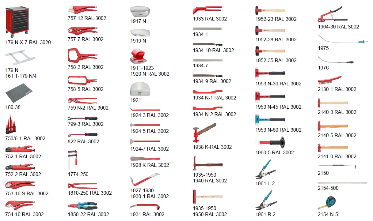 - Czerwone oznaczenie narzędzi informuje użytkownika o zastosowaniu specjalnym w pracach przy aluminium lub pracach mieszanych