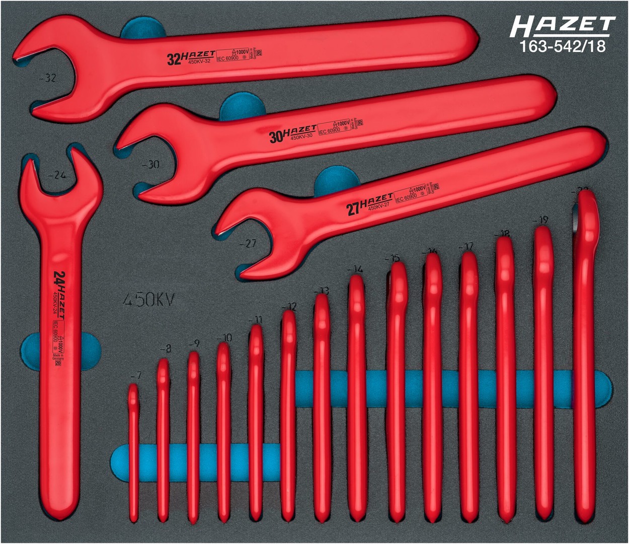- Zestaw kluczy płaskich jednostronnych z izolacją ochronną 1000V Hazet 163-542/18: