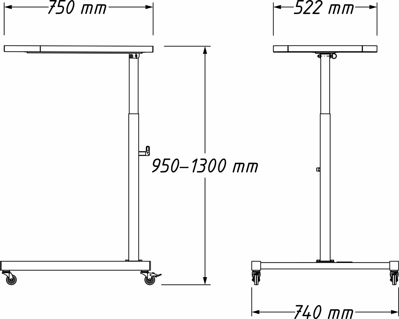 15-krotna regulacja wysokości (skok: 25 mm)