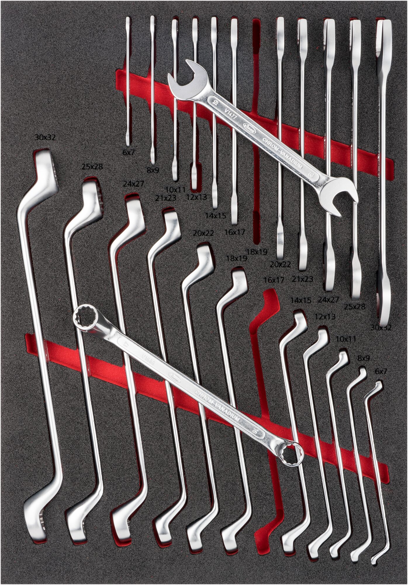W zestawie z wózkiem wyposażenie narzędziowe w 8 modułach piankowych z 469 narzędziami:
