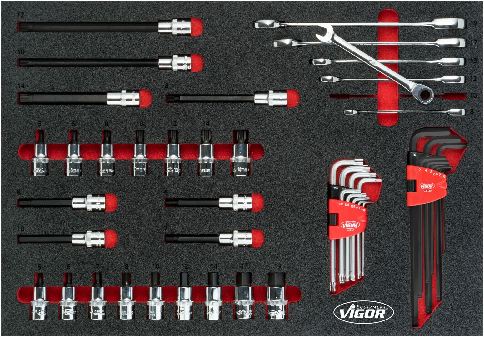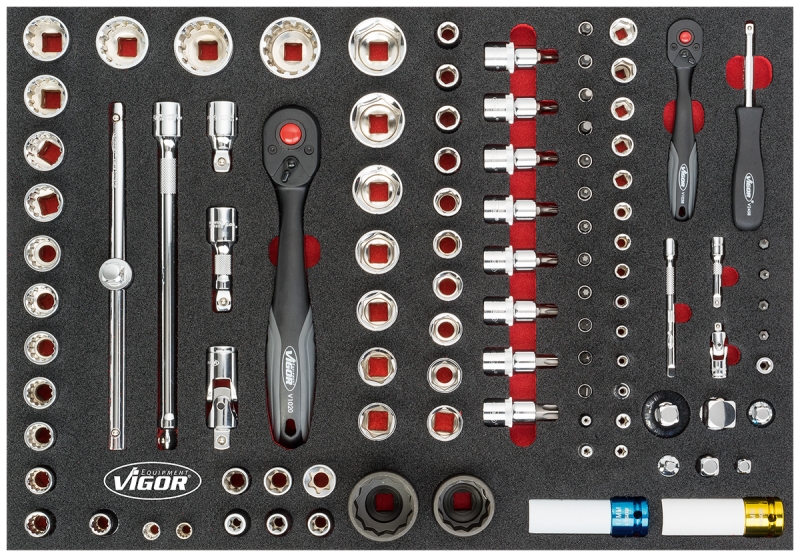 Wózek warsztatowy VIGOR - V4497 z 255 narzędziami w modułach piankowych