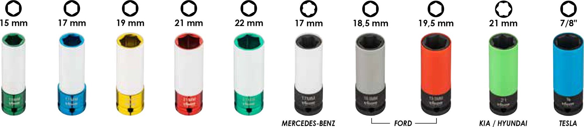 Rozmiar klucza 15 · 17 · 18,5 · 19 · 19,5 · 21 · 22 · 22,2 mm