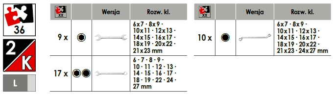 Zestaw dwustronnych kluczy oczkowych, dwustronnych kluczy maszynowych płaskich i kluczy płasko-oczkowych VIGOR - V6643