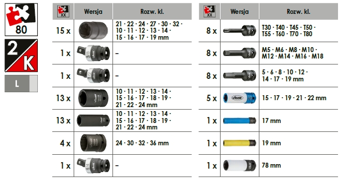 Zestaw kluczy nasadowych do kluczy udarowych VIGOR - V6811