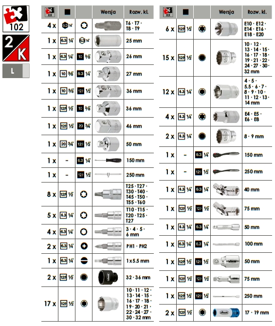 Zestaw kluczy nasadowych do VW oraz AUDI VIGOR V4587