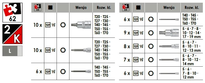 Zestaw kluczy nasadowych trzpieniowych VIGOR V6809