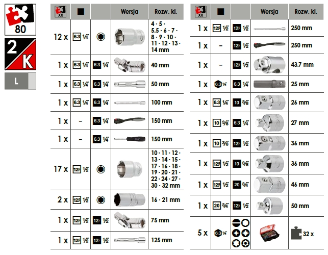 Zestaw kluczy nasadowych VIGOR - V5115