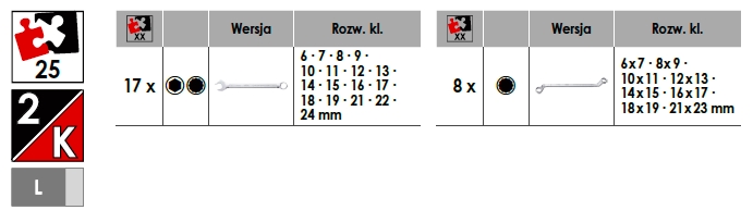 Zestaw kluczy płasko-oczkowych, kluczy oczkowych dwustronnych VIGOR - V6649