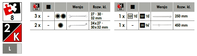 Zestaw kluczy płasko-oczkowych, przedłużek, łyżek montażowych do VW i AUDI VIGOR - V6820