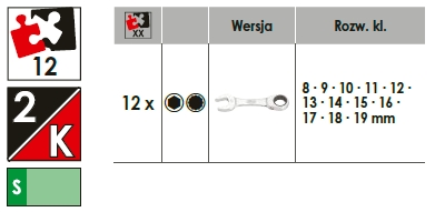 Zestaw kluczy płasko-oczkowych z grzechotką, krótkich VIGOR V5075