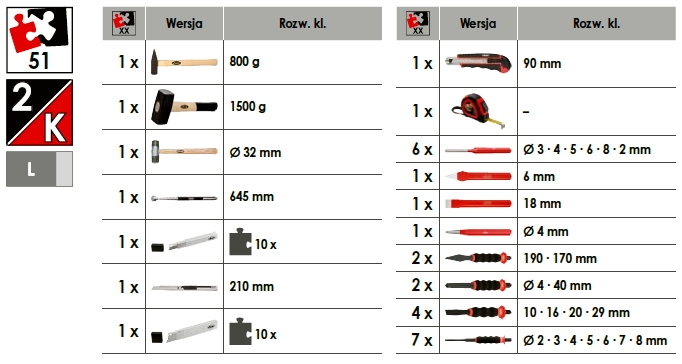 Zestaw młotków, przecinaków i wybijaków do zawleczek VIGOR V6817