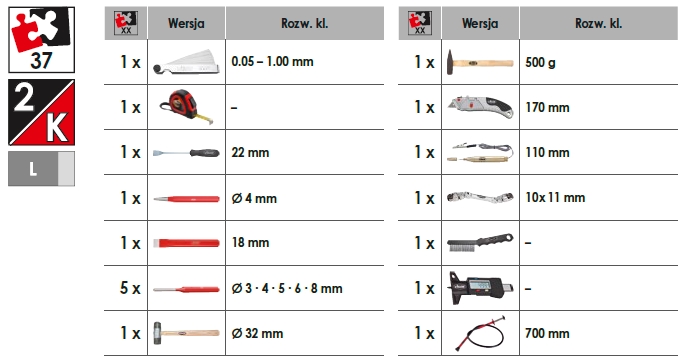 Zestaw młotków, przecinaków, wybijaków do zawleczek do VW i AUDI VIGOR - V4511