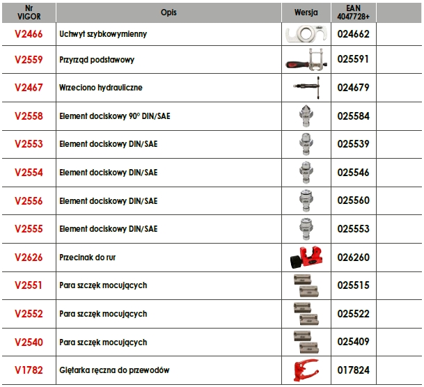 Zestaw narzędzi do formowania przewodów hamulcowych VIGOR V1728